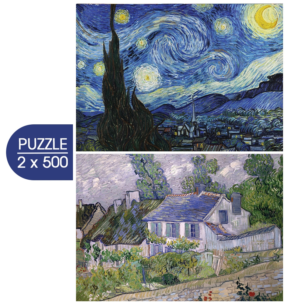 Startseite > Puzzle - Kunst > 2 Puzzles - Die Kunst van Goghs: Sternennacht, 1889 - Häuser in Auvers, 1890