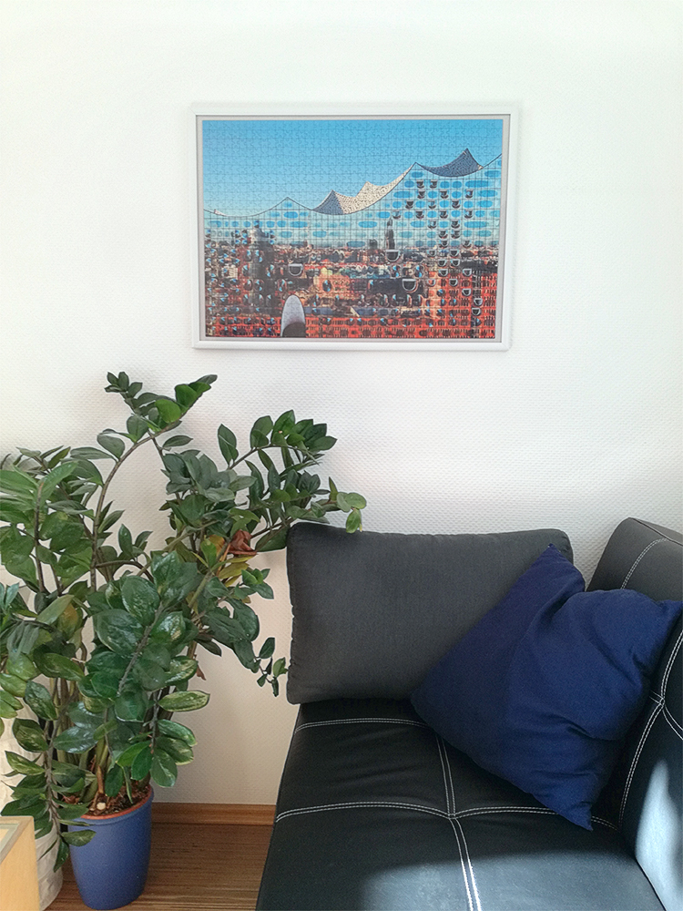 Die Puzzlefans erwartet hier eine besonders verzwickte Aufgabe: Das Motiv ist eine Stadtansicht von Hamburg. Doch es handelt sich nicht um eines der „üblichen“ Hamburg-Motive, sondern um ein Spiegelbild der Stadt: die einmalige Ansicht Hamburgs im Spiegel der Glas-Fassade der Elbphilharmonie. Und diese ist selbst ein riesiges Puzzle...